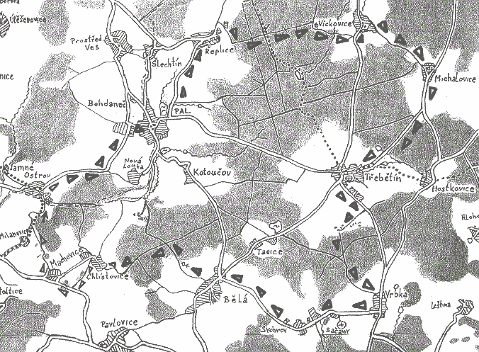 Trasa 25 km: Od startu po vlastním značení po asfaltové cestě kolem palírny až do Řeplic (1,5km). V Řeplicích doprava a podél rybníka. Asi 50 metrů za Řeplicemi odbočíme doprava po cestě kolem samostatně stojící usedlosti (s koňmi v ohradě) k lesu. Po chvíli se cesta stočí do lesa a pak 1,5km stále rovně. Na křižovatce tvaru T odbočíme doprava. Cesta se točí doleva a pokračuje až k silnici. Po ní jdeme doleva do Víckovic (5km). Tam za kapličkou odbočíme doprava na cestu, která vede téměř rovně do Michalovic. Brzy po začátku Michalovic odbočíme doprava mezi ploty ke kostelu (6,6km-kontrola) a pokračujeme rovně a u STOPky doprava po silnici. Asi po 0,5 km na křižovatce doprava na Třebětín (9,2km-kontrola u kostela). Odtud po silnici směrem na Ledeč. Kousek za Třebětínem doprava po asfaltové cestě k osamoceným domům. Na konci asfaltu doleva do lesa po cestičce a cestě do Vrbky (12,2km).Na silnici doprava, u čekárny odbočíme opět doprava a přes Sačany a Sychrov (13,9km) (asfalt přejde v polní cestu) do Bělé (15,5km).V Bělé po silnici doleva a hned za autobusovou čekárnou doprava (trasa 35km pokračuje rovně) z Bělé na polní cestu podél hájovny do lesa. Na křižovatce lesních cest doleva. Po této cestě rovně, až za lesem se cesta klikatí do Chlístovic (19,4km). Hned za nimi doleva na cestu a přes návrší na silnici. Po ní doprava a po okraji Machovic. Hned za Machovicemi doprava na asfaltovou cestu a z ní hned doleva na polní a kolem cihlové budky pod lesík a doleva kolem posedu pořád po návrší až k elektrickému ohradníku už jen po vyjetých kolejích po louce. U ohrady doprava dolů po žluté zn. do Ostrova (21,6km). (Kdo jde raději po měkké cestě lesem ale o 500m delší, může hned na začátku Ostrova doprava po zelené až do Bohdanče.) Po žluté až na hlavní silnici a od čekárny doprava po vlastním zn. po silnici do Bohdanče. Tam hned za pilou LESS doprava po cestě ke kostelu a kolem hospody do cíle.